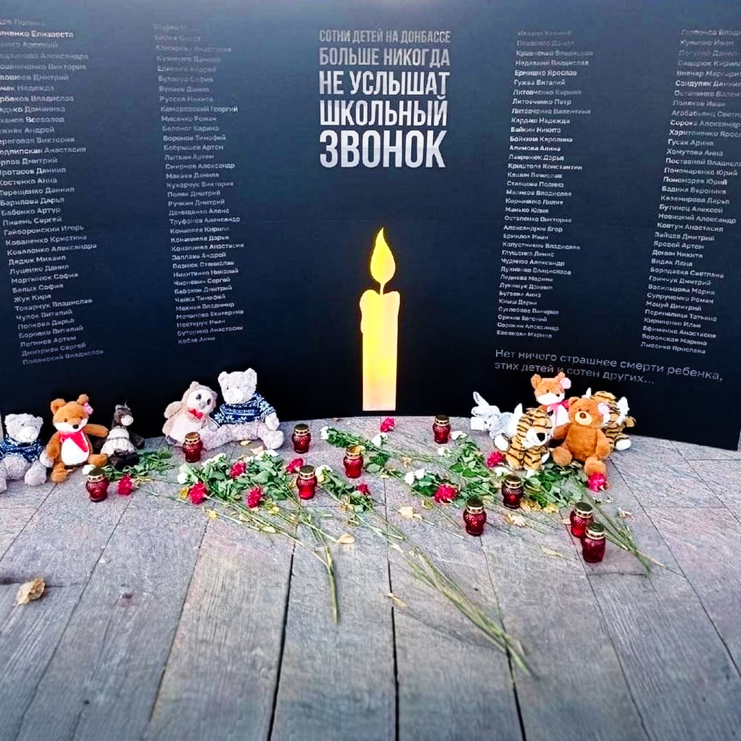 На воронежской Стелле у мемориала расстрелянным детям Донбасса ветер шевелит ленты на плюшевых мишках. К подножию принесли куклу в выпускном платье. Её атласный поясок уже выцвел под дождём. На плите выбито: «Сотни детей на Донбассе больше никогда не услышат школьный звонок». Мимо проходит молодая пара. Останавливаются. Осеняют себя крестным знамением, шепчут «Царствие Небесное…». Иногда сюда приносят лампады, ставят свечи, словно попытка согреть мёртвых. На плите выбиты имена школьников, которые стали жертвами киевского режима. Девушка риторически задает вопрос: «За что их?! Они же невинные…».